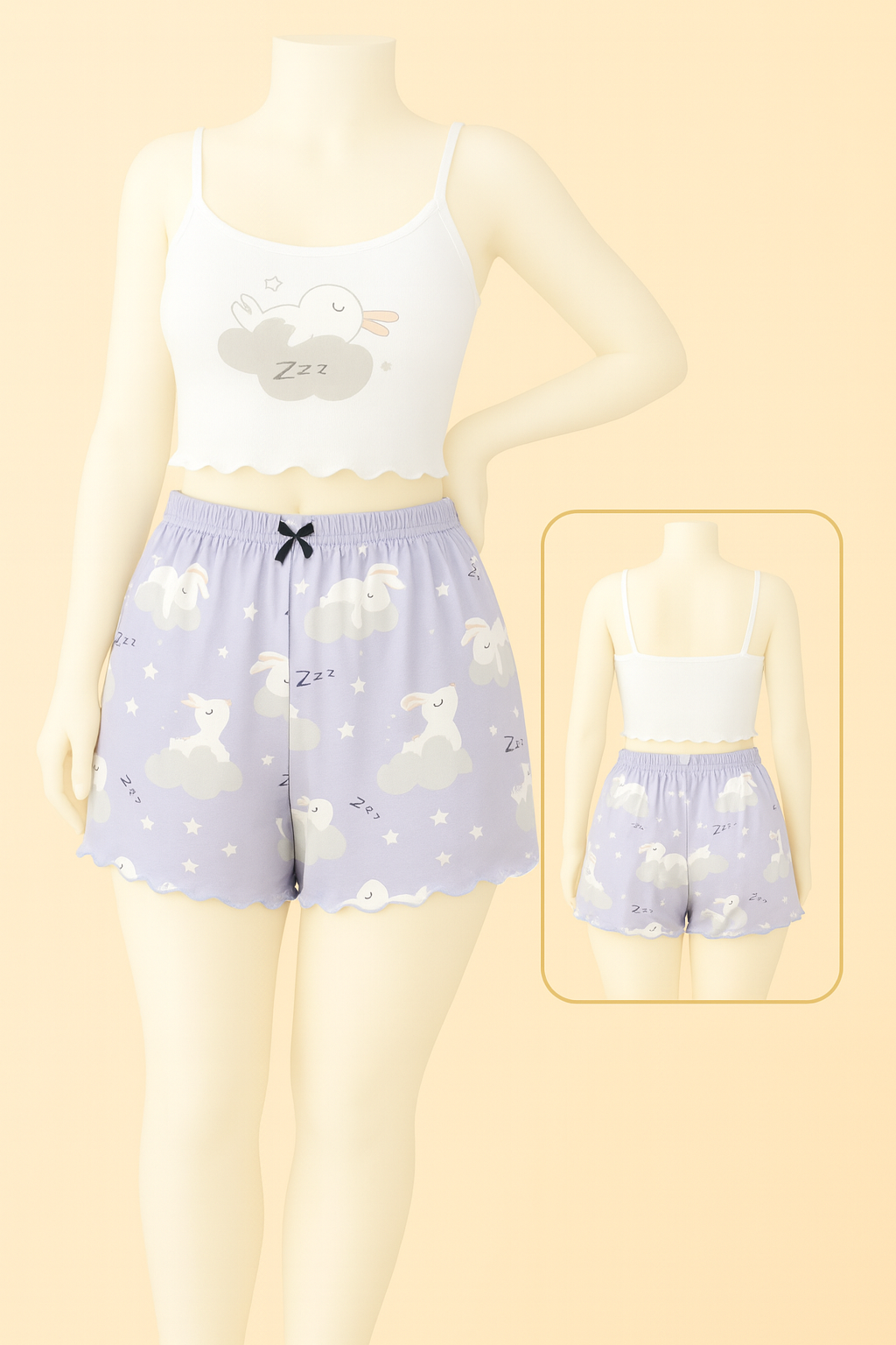 Soft and adorable. Cute bunny print with pastel touch. Perfect for sweet and cozy nights.