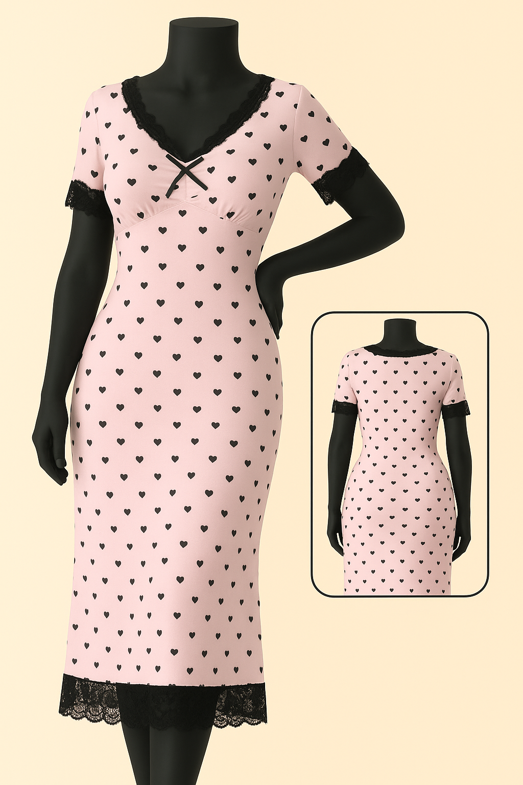 Charming and soft. Cute heart prints with lace trim. Perfect for dreamy nights in style.
